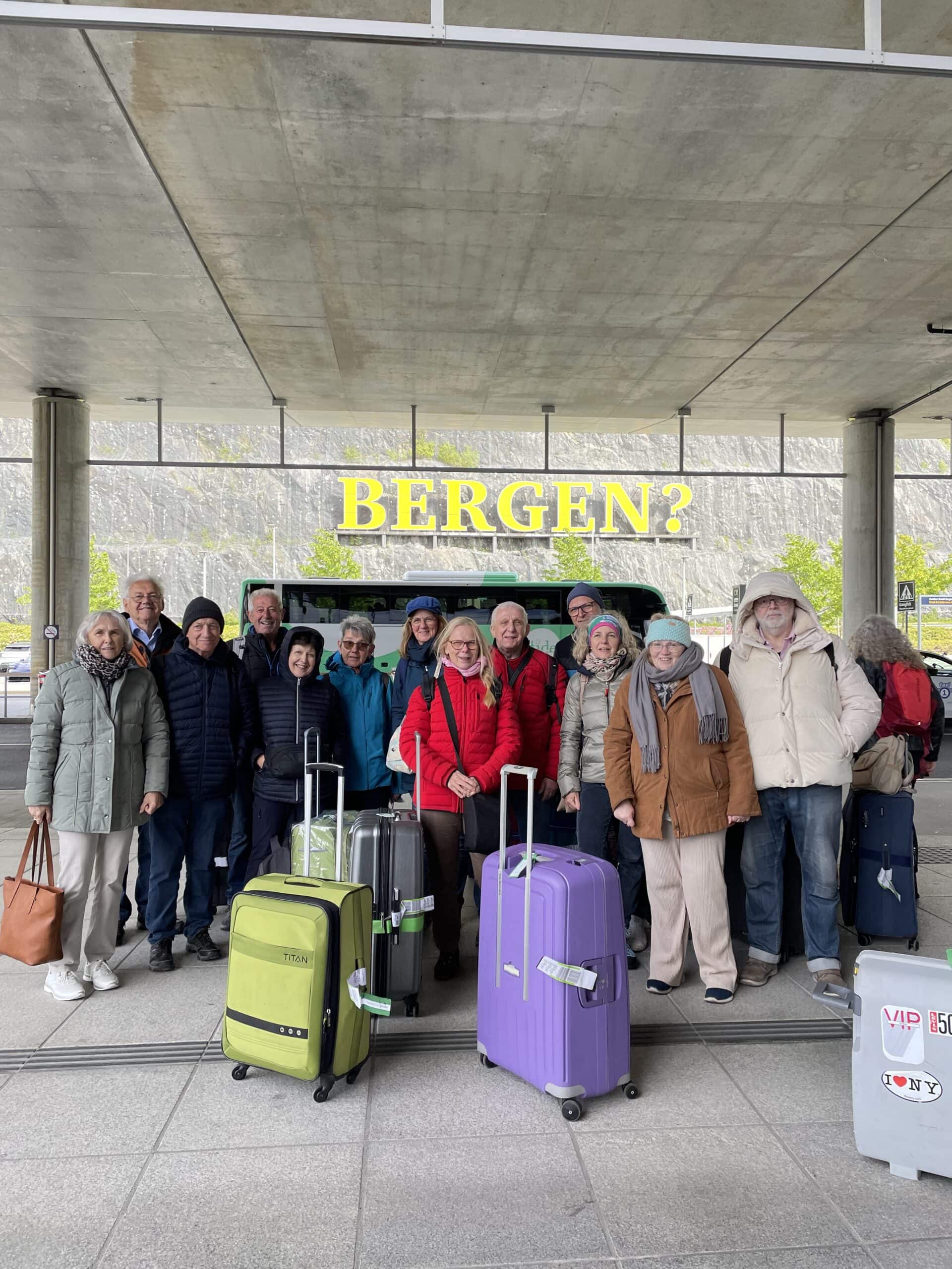 Die Anreise nach Frankfurt und der anschließend Linienflug nach Bergen verlief ohne Probleme. Allerdings änderte sich unser Gate von A50 zu A69. Zum Glück hatten wir noch genug Zeit, um uns zum richtigen Gate, ohne Hektik zum Zugehen. Der Flughafen in Bergen ist schön, klein und übersichtlich. Dort erwartete uns das nächste Abenteuer. Ein Koffer tauchte nicht auf! Mit Geduld kam dieser dann auch irgendwann aufs Band. Der Transfer zur MS Nordkapp barg auch ein paar Hürden. Transfer bedeutete hier nicht, daß jemand einem Abhol-Schild in der Ankunftshalle steht, sondern daß ein öffentlicher Bus zum Hafen und zum Check-in Terminal für die Hurtigruten fährt Da der Bus an jeder Milchkanne anhält, kamen wir in den Genuss einer Stadtrundfahrt durch das wunderschöne Bergen. Bergen gilt als eine der schönsten und bemerkenswertesten Städte Norwegens.