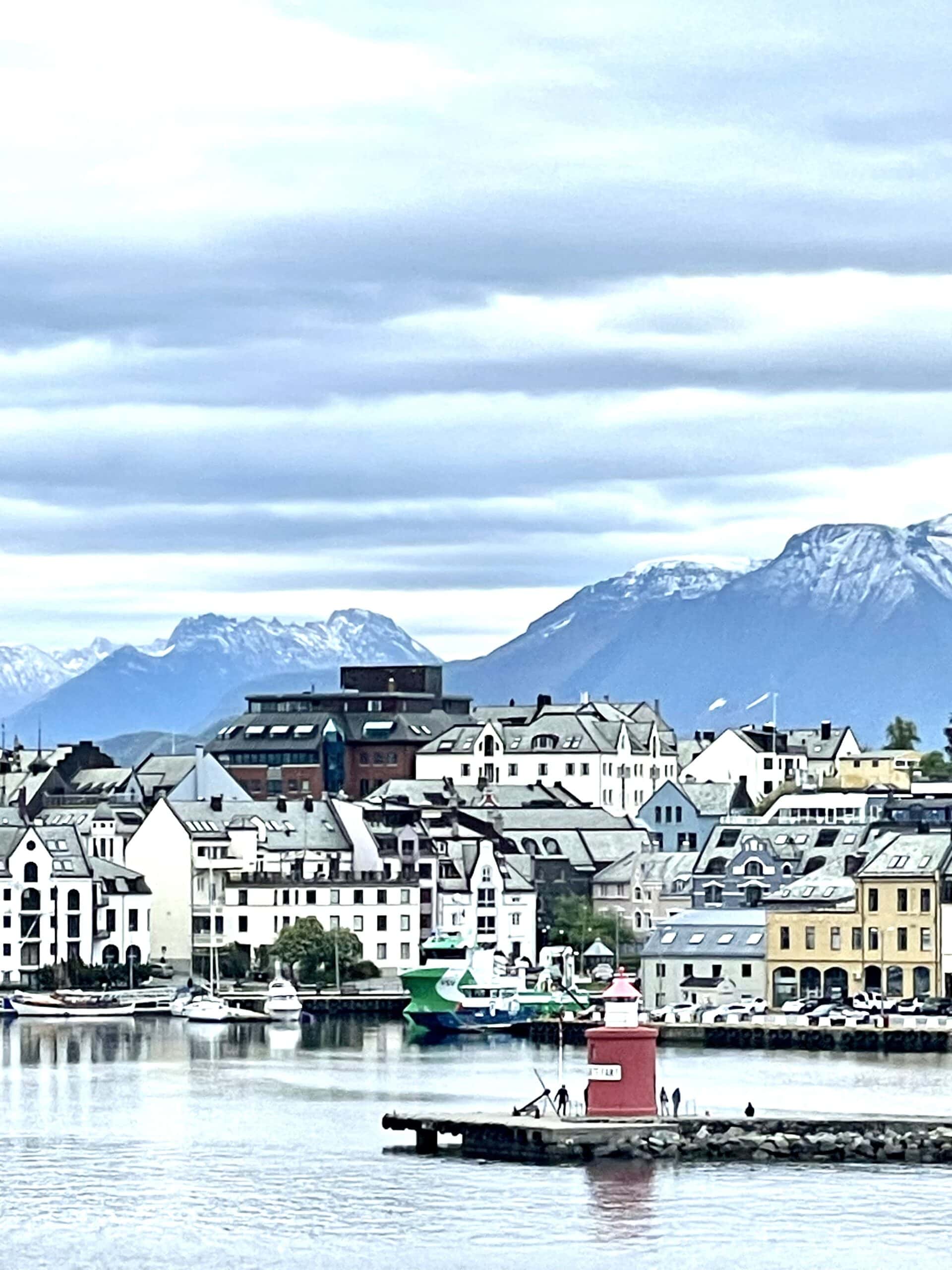 Zurück an Bord war wieder Zeit zur freien Verfügung, bis das Schiff im Hafen von Ålesund anlegte. Wir gingen alle von Bord, um an einen geführten Stadtrundgang teilzunehmen. Eine sehr interessante Stadt, die 1904 niederbrannte und im Jugendstil wiederaufgebaut wurde.