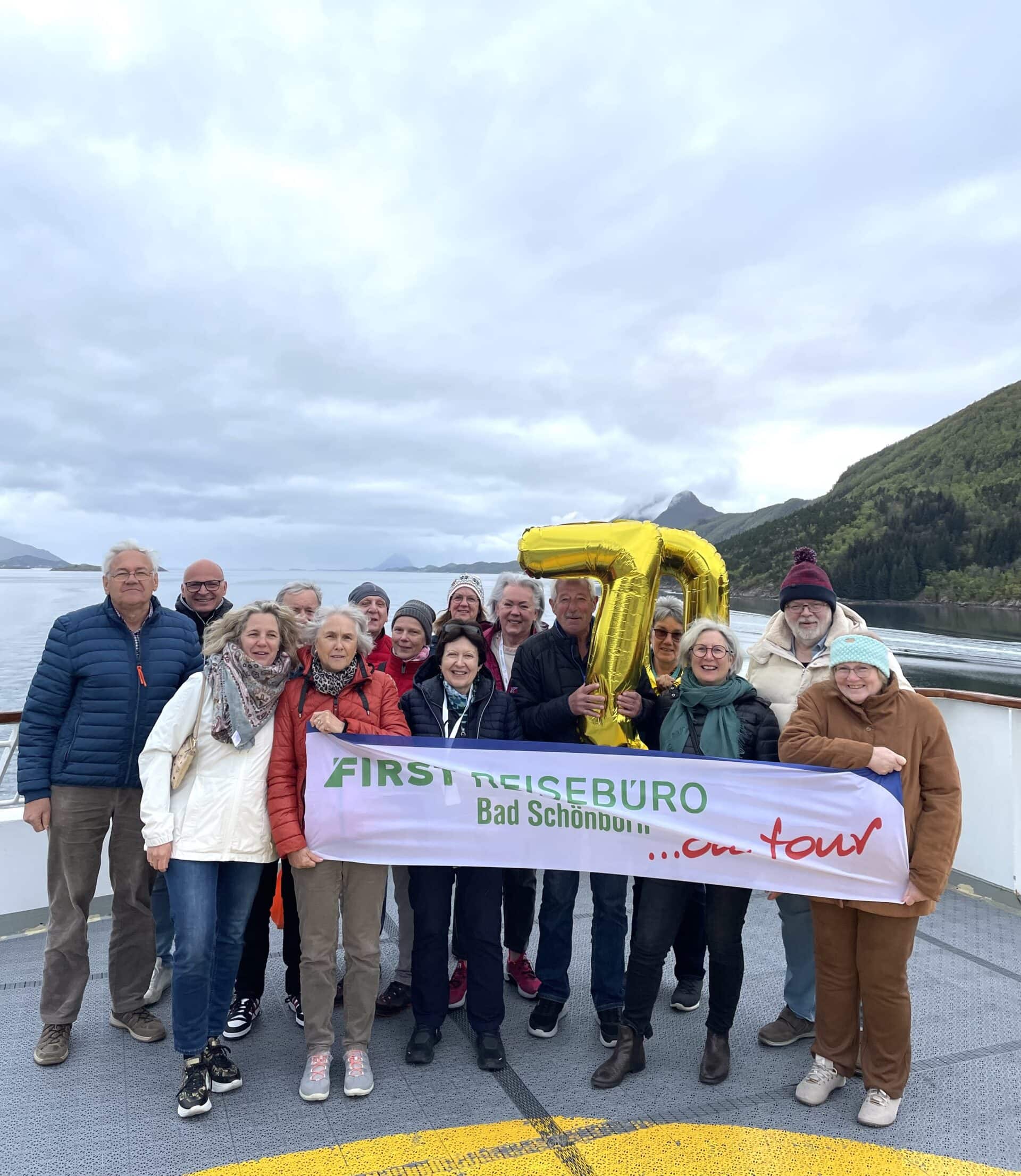 Mit einem wunderbaren Frühstück starteten wir in den Tag und bis zu unserem ersten Ausflug nach Urke, konnte jeder das Schiff auf eigene Faust entdecken. Und da gab es viel! Auf dem 7. Deck standen bequeme Loungesessel bereit, von wo aus man wunderbar die Landschaft sehen konnte. Nachdem wir das Westtkap umrundet hatten, gelangen wir auf das offene Meer. Doch bald erreichten wir den Stolz Norwegens, beeindruckende Naturlandschaften, welche Norwegen weltberühmt gemacht haben. Unser erstes spektakuläres Fjord-Erlebnis führte uns mit einem kleinen Beiboot zu einer ganz kleinen Insel und einem noch kleineren Ort namens Urke. Einfach wunderschön. Gemeinsam unternahmen wir eine kleine Wanderung und genossen die Schönheit der Natur und das wunderbare Wetter.